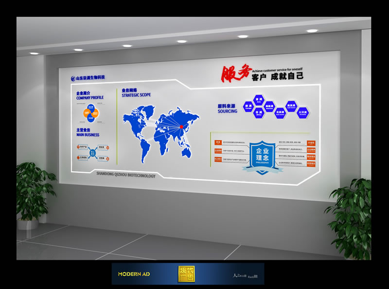 山东柒洲生物科技有限公司大厅设计制作 日期:2023-12-09 / 人气: 效果图: 制作: 编辑:xiaoyang 上一篇:聊城黄河河务局老年活动中心 下一篇:山东红苹果园林工程有限公司-会议室、楼层文化项目