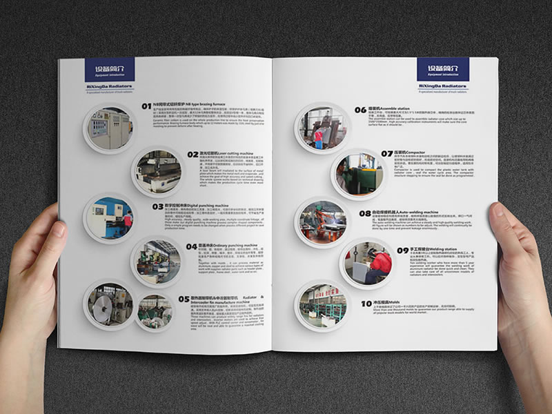 画册一共设定为8个面,8个面需要包含封皮封底,企业中英文简介,企业荣誉,企业的产品以及设备。其中,产品部分和设备部分为主要展示的部分,内容编排相对紧凑,选用简洁的设计诠释日兴达企业画册。
