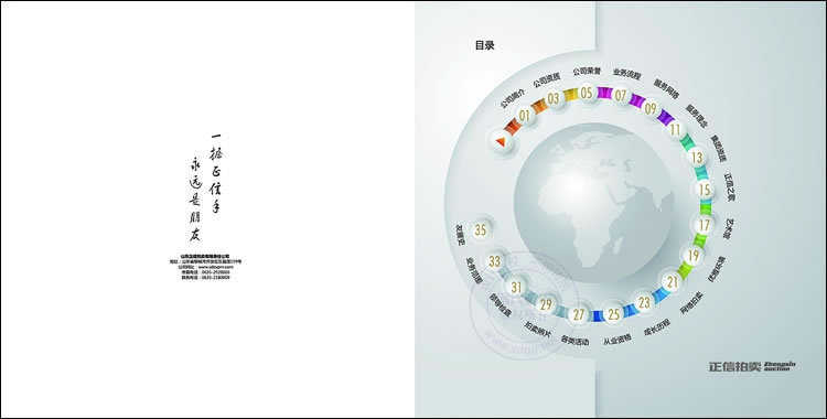 山东聊城正信拍卖公司画册设计作品 日期:2025-10-31 / 人气: (因图片类素材版权原因,部分要素可能会马赛克展示) 编辑:applem912 上一篇:山东聊城正信招标集团画册设计作品 下一篇:聊城智海鸿鹏教育宣传画册设计作品