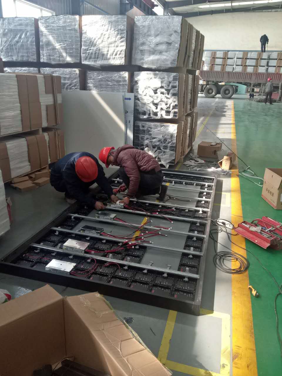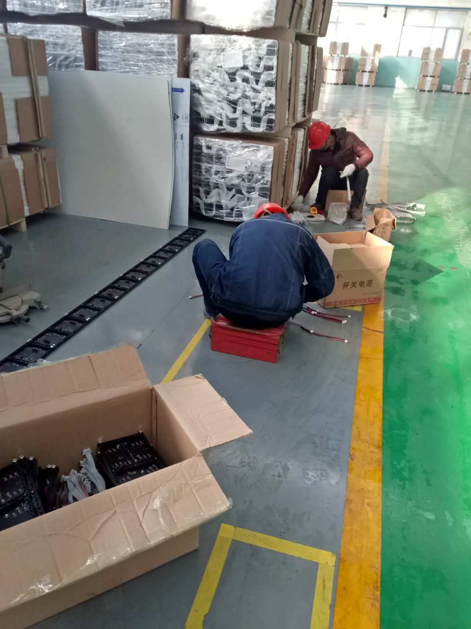 显示屏比较大,用时两天,除了一股股的线一点点的拼接,我们的工作人员还做了一回飞檐走壁的大侠。