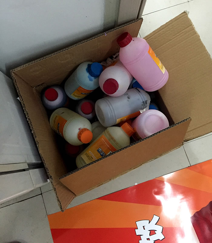 一瓶瓶的墨都见底了,空瓶子堆积成山,工作量繁重,黄色和红色做主力,整体颜色活力十足,就好像活力十足的现代广告员工,每天都是满血进入工作状态,只求用活力感染这个世界。