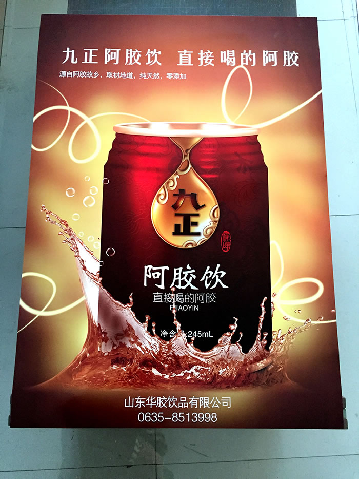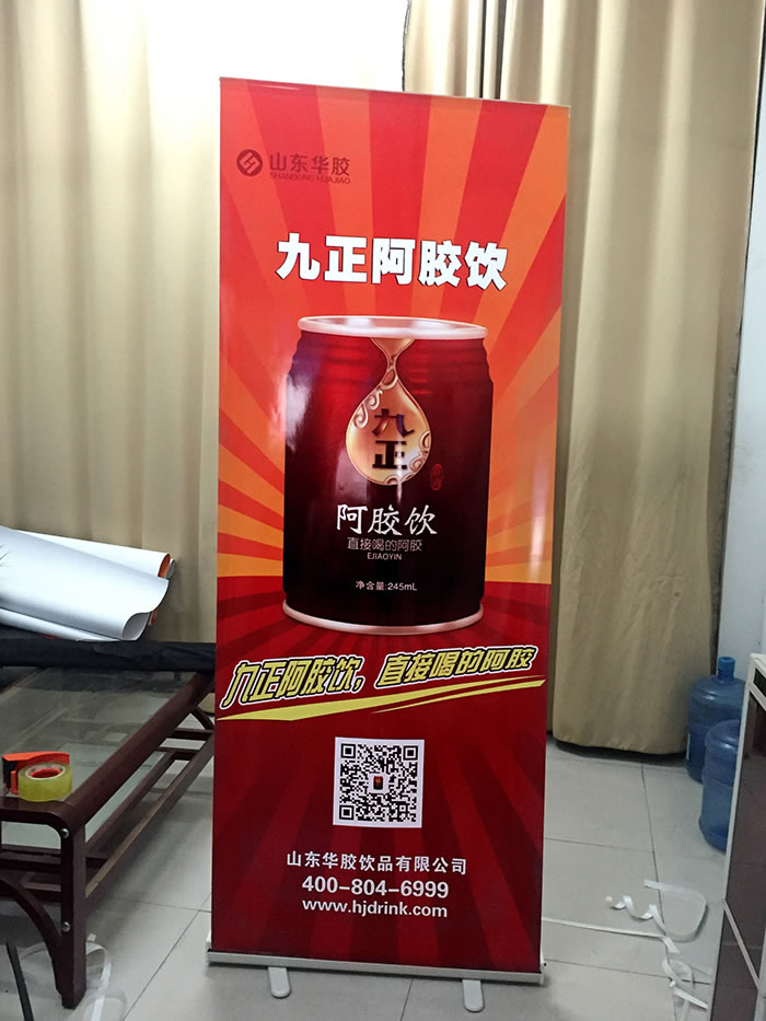 2015年,易拉宝,展架,还有海报和爆炸贴的制作又全权交由现代广告制作,数量翻倍,感谢华胶集团对现代广告制作能力的肯定和信任,2016年,你们能够看到的九正阿胶饮的宣传品大部分都出自现代广告之手。
