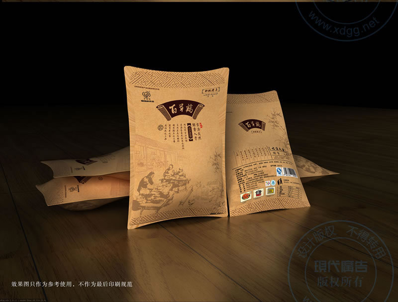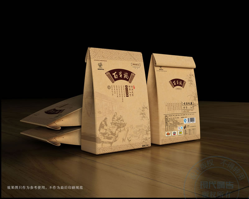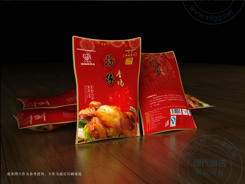 这几款图的包装设计很快就通过了客户的认可,得到了客户的赞赏,其中风城烧鸡设计图中,客户对自己所提供的烧鸡图片造型,非常不满意,反复换了N次,每次我们的设计师都不厌其烦的,根据客户想要表达的意思,为客户提供的草图,反复修改,经常饭也顾不上吃。直到换了不下于7次烧鸡图片的图,客户终于找到一个自己非常满意的具有“昂首挺胸”的鸡的造型,做出了效果图。