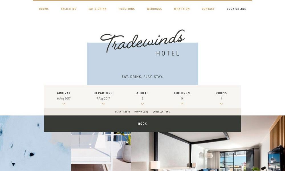 Tradewinds Hotel 就挑选了一款简约又轻灵的手写字体,它的尺寸够大,清晰、可读性良好,在网页中用作展示之用。