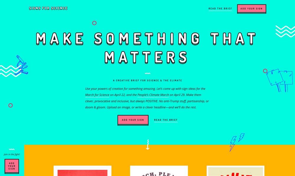 Signs for Science 这个网站中,手绘的图标和小插画,配合着网站中玛卡龙系的配色和圆润的字体,营造出充满童趣的氛围,用户在这种氛围下心情通常不会太差。