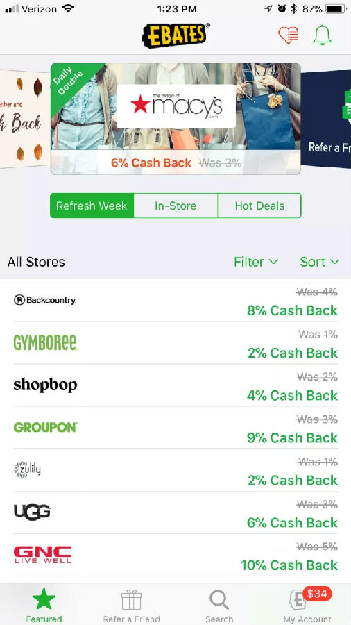 bates 这款APP 就使用了两级菜单的设计,首先最常用的导航选项被做成标签页置于页面顶部,另外一个就是右上角的书签式菜单(心型+汉堡图标)。整个设计确保了功能性,足够简单,不会让用户觉得复杂,也可以轻松找到他们想要的东西。