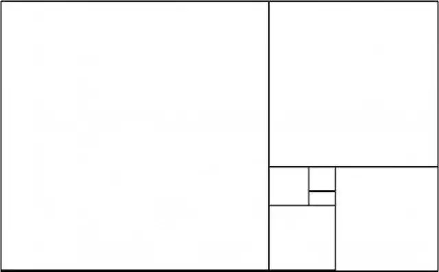 如果你一直按照这样的方式把黄金比应用到新矩形上,那么你最终会得到一个个逐渐缩小的正方形: